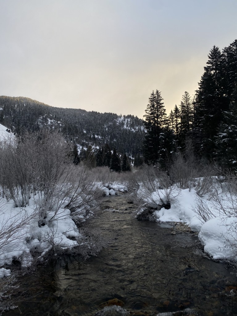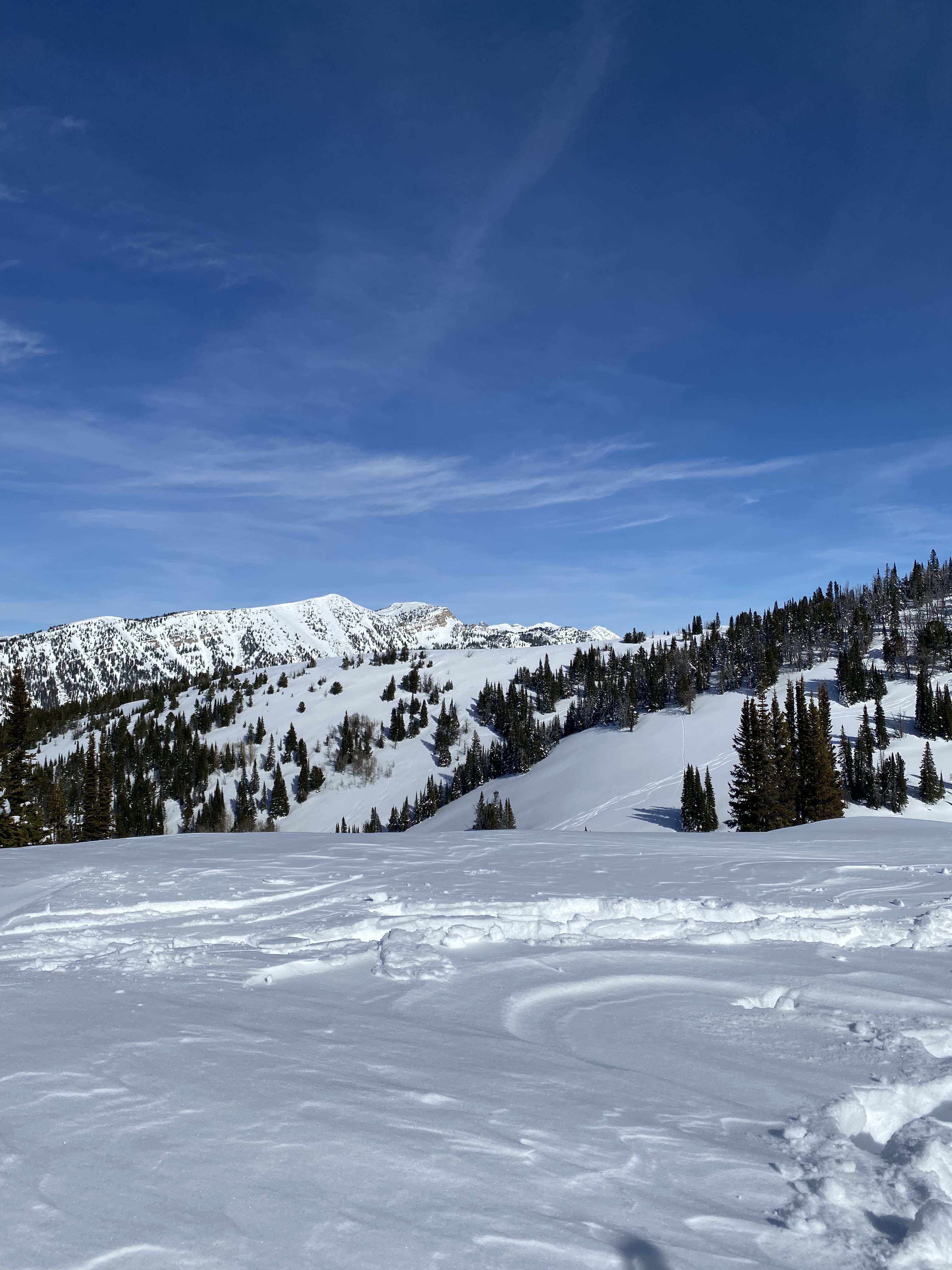 The original plan was to begin climbing the first ridge after Plummer canyon, but after finding a very well packed skin track we decided to chance it and continue up Plummer canyon in hopes of finding our goal easily rather than a 2000 ft. bushwhack. It should be noted that everything on the north side of Plummer canyon (on the skinner’s left) is closed to winter traffic to create a habitable winter refuge for elk and deer. This should be respected so winter access to nearby areas can be maintained. So, taking care not to veer left, we climbed up the canyon bottom in search of a breaking tree line.