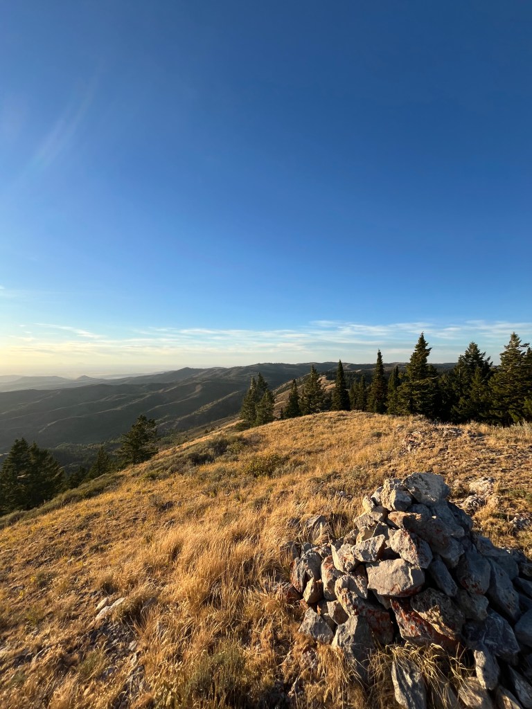 So, I dashed uphill like I never have before. Luckily, the sagebrush broke and I was able to crank out that last half mile in a few short minutes. I was sweaty, scratched up, and a little worried about time, but I made the top. I honestly, wish I had come earlier because the view was absolutely gorgeous from the summit. The Blackfoot mountains rolled in every direction with no sign of civilization in sight. I was left in awe of how much open and untamed land exists in Eastern Idaho.