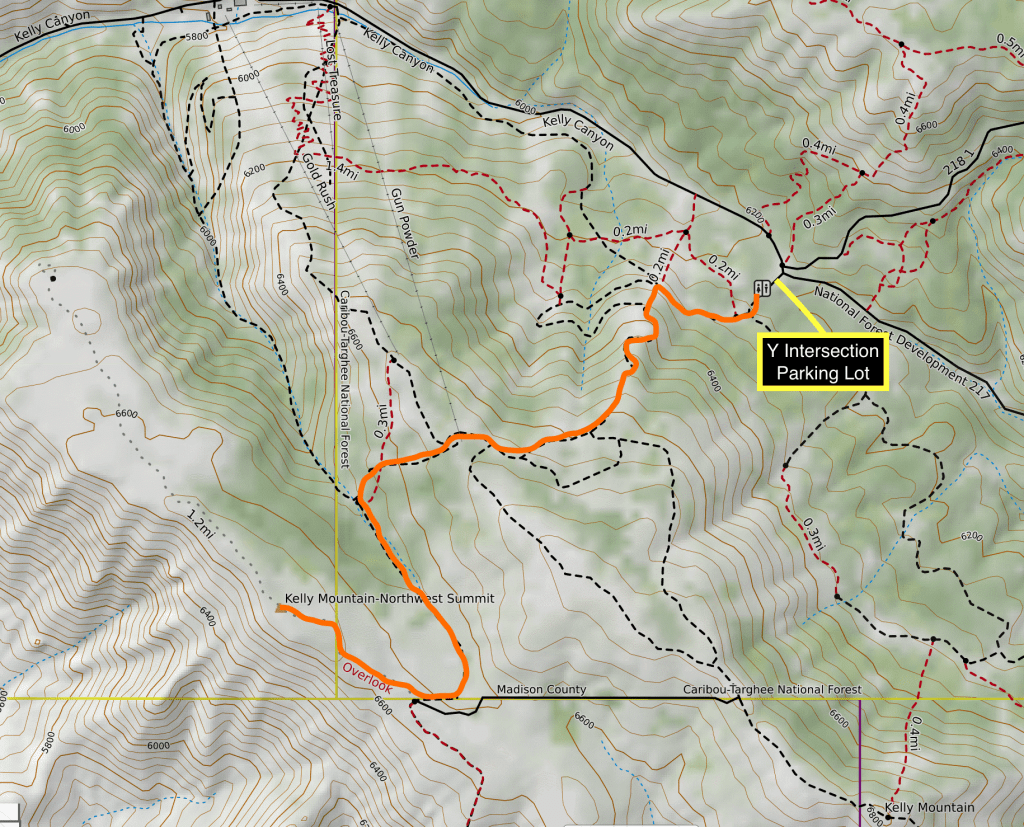 My only expectation for the day was to use the time as trail run fitness training. On the way to the mountain I picked up my phone and, luckily, I glanced once more at the list of county high points, realizing that the Kelly Mountain I had climbed years ago was not Jefferson county’s high point because it lay across the county line in Bonneville county. The actual high point was a gentle point on a ridgeline a little over a mile away called Kelly Mountain- Northwest Summit. The day was already looking up.