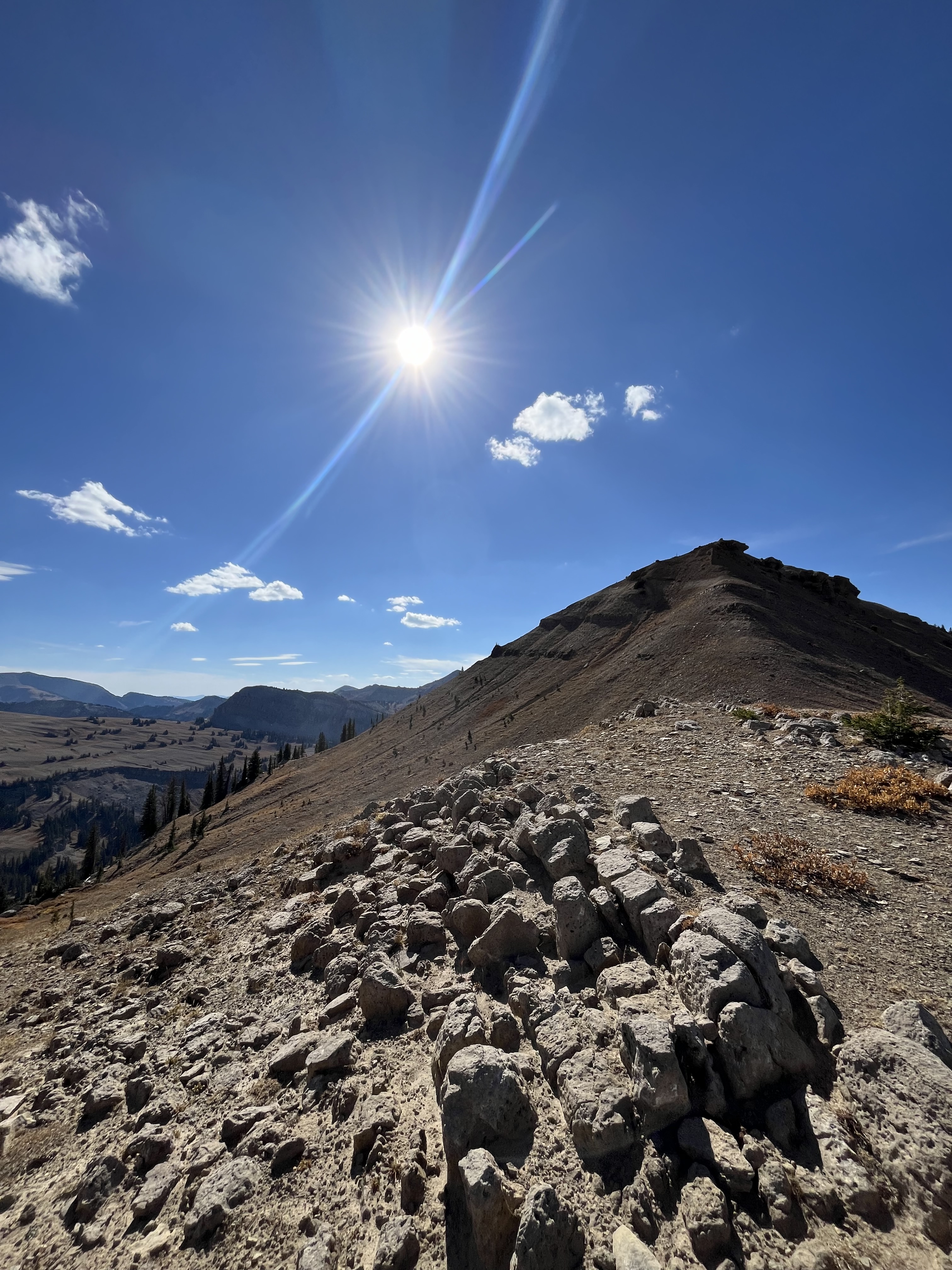 Before becoming too enamored by the summit we realized it was high time to turn and head back down the mountain. As we walked off the top we looked for fossils that give the peak its title. We didn’t find a single one on the summit, saw a few small shells down the ridge, and some fossilized corral in the valley but we were mostly disappointed. A young solo hiker did tell us that the north end of the peak was said to contain more, but the kid paleontologist inside me is still disgusted at the lack of fossilized remains.