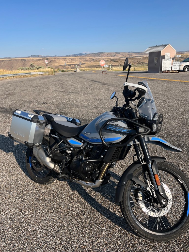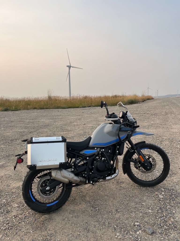 I drive a Royal Enfield Himalayan 450. It’s pretty decked out with the aluminum pannier boxes, the large windshield, hand guards, and engine guards. It’s not a huge bike as far as ADV engines go but it’s pretty fun and gets me to most of the places I need to go.